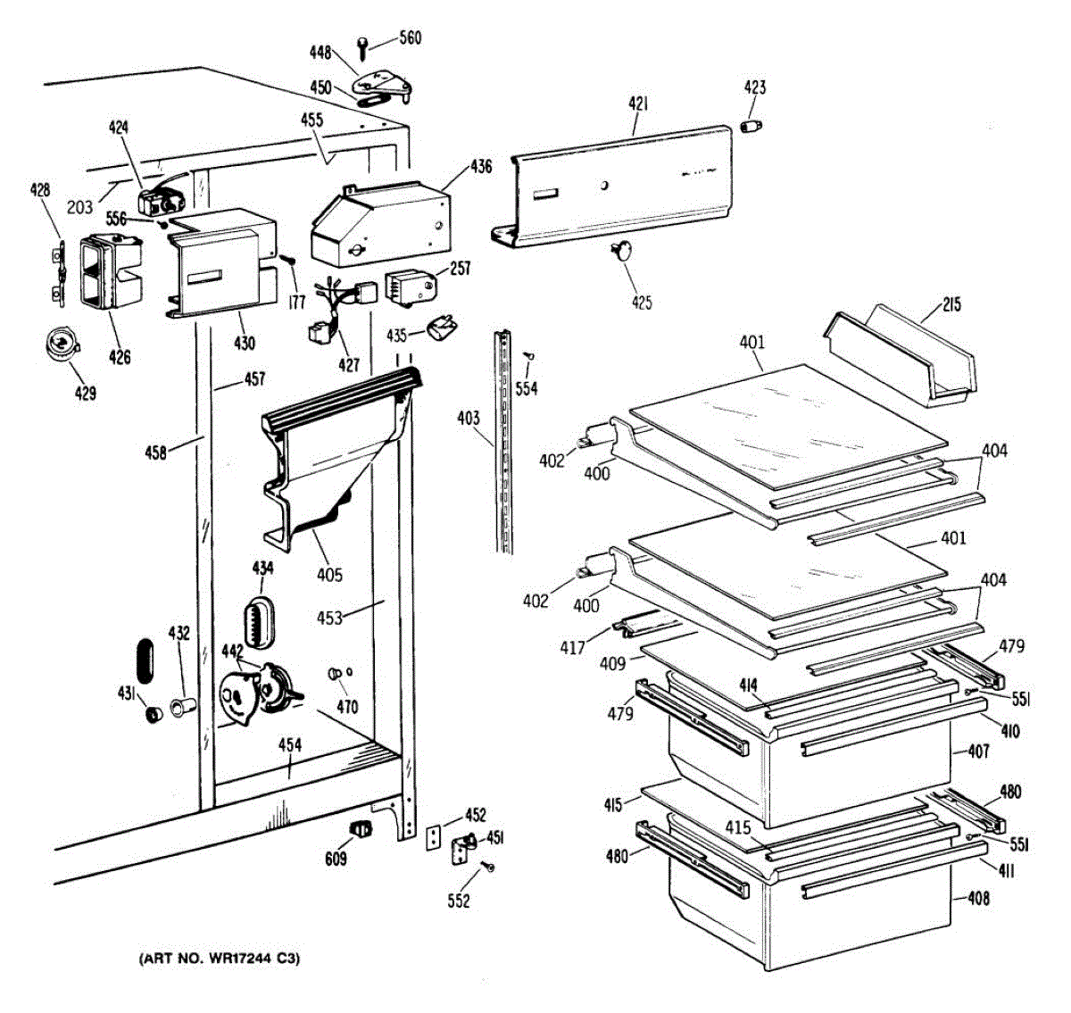 The left Drawer Rail Slide is an OEM part for GE refrigerators. It provides smooth sliding action for refrigerator drawers, ensuring easy access and optimal storage management. This component guides the drawer in and out, preventing misalignment and supporting the weight of the drawer and its contents. It measures approximately 14 7/8 inches long.