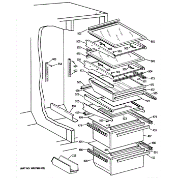 The Drawer Slide Assembly is an OEM part for GE refrigerators. It allows for smooth and easy movement of the refrigerator drawers, ensuring convenient access to stored food items. It provides the necessary support and stability to hold the weight of the contents within the drawers. The slide measures approximately 16 1/4 inches long.