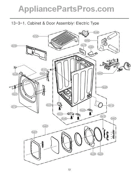 The Door Seal is an OEM part for LG dryers. It forms a tight seal around the dryer door, preventing heat and moisture from escaping during the drying cycle, which ensures efficient drying and energy use.