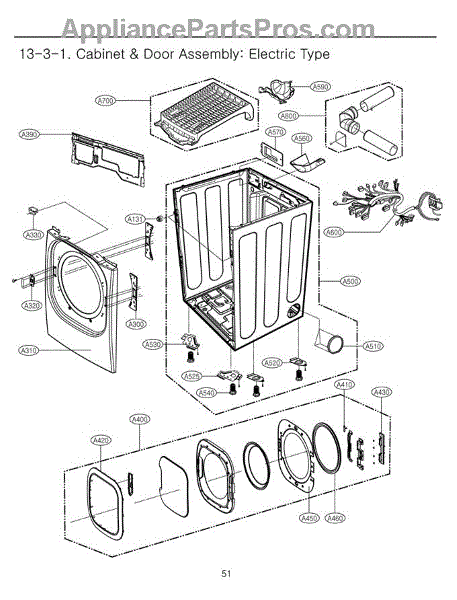 The Door Seal is an OEM part for LG dryers. It forms a tight seal around the dryer door, preventing heat and moisture from escaping during the drying cycle, which ensures efficient drying and energy use.