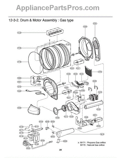 The Liquid Propane Gas Orifice is an OEM replacement part for LG dryers. This orifice is specifically designed for models that run on liquid propane gas. It regulates the flow of gas into the burner, allowing the dryer to heat up and dry your clothes. Causes of a faulty orifice can include corrosion from repeated heating cycles breaking down internal components. Orifices degrade naturally over extended use. Symptoms of a failed orifice include: