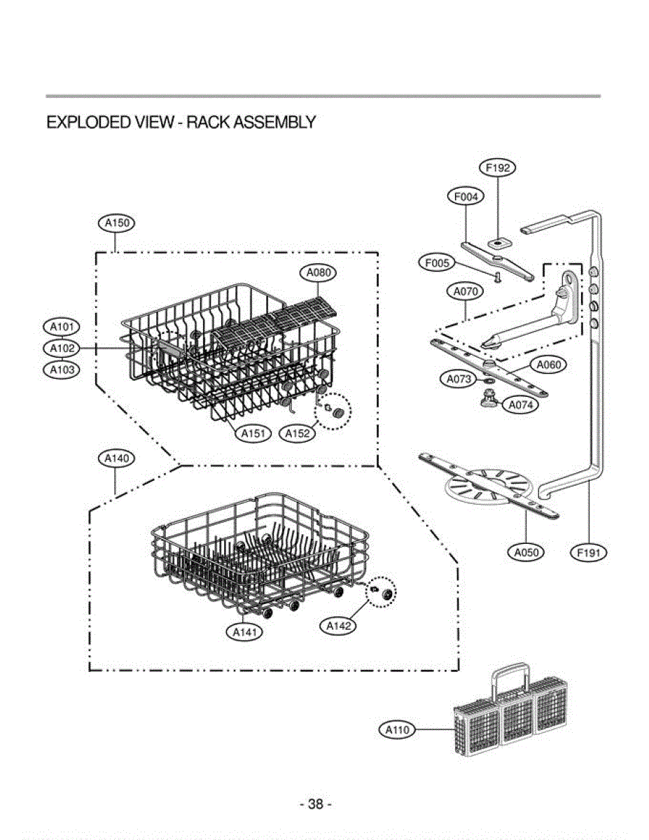 The Upper Rack Assembly is an OEM part for LG dishwashers. This part provides a durable and efficient space for washing glasses, cups, and smaller dishes. This assembly maximizes the cleaning capacity of your dishwasher, allowing for the organized plac