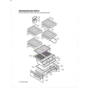 Refrigerator shelf assembly that replaces a damaged or missing internal shelf, restoring flat, secure storage for food and containers. Helps keep items level and organized inside the fridge. What it does
