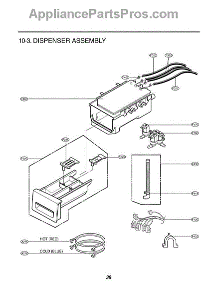 The Dispenser Assembly is an OEM part for LG front-loading washers. It is responsible for dispensing detergent and fabric softener at the appropriate times during the wash cycle. The dispenser assembly contains separate compartments for detergent and fabric softener, as well as timed mechanisms that release each additive when needed for cleaning and softening results.