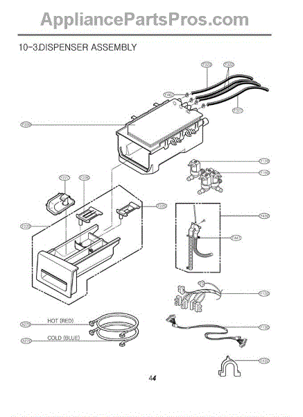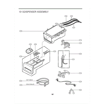 The Dispenser Assembly is an OEM part for LG front-loading washers. It is responsible for dispensing detergent and fabric softener at the appropriate times during the wash cycle. The dispenser assembly contains separate compartments for detergent and fabric softener, as well as timed mechanisms that release each additive when needed for cleaning and softening results.