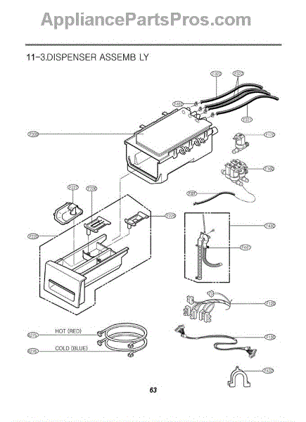 The Dispenser Assembly is an OEM part for LG front-loading washers. It is responsible for dispensing detergent and fabric softener at the appropriate times during the wash cycle. The dispenser assembly contains separate compartments for detergent and fabric softener, as well as timed mechanisms that release each additive when needed for cleaning and softening results.