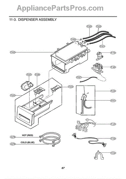 The Dispenser Assembly is an OEM part for LG front-loading washers. It is responsible for dispensing detergent and fabric softener at the appropriate times during the wash cycle. The dispenser assembly contains separate compartments for detergent and fabric softener, as well as timed mechanisms that release each additive when needed for cleaning and softening results.