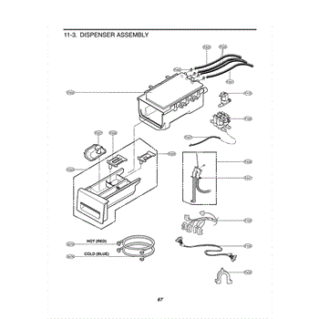 The Dispenser Assembly is an OEM part for LG front-loading washers. It is responsible for dispensing detergent and fabric softener at the appropriate times during the wash cycle. The dispenser assembly contains separate compartments for detergent and fabric softener, as well as timed mechanisms that release each additive when needed for cleaning and softening results.