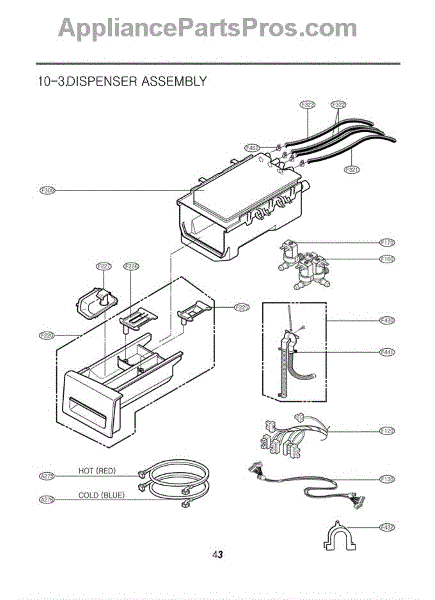 The Dispenser Assembly is an OEM part for LG front-loading washers. It is responsible for dispensing detergent and fabric softener at the appropriate times during the wash cycle. The dispenser assembly contains separate compartments for detergent and fabric softener, as well as timed mechanisms that release each additive when needed for cleaning and softening results.