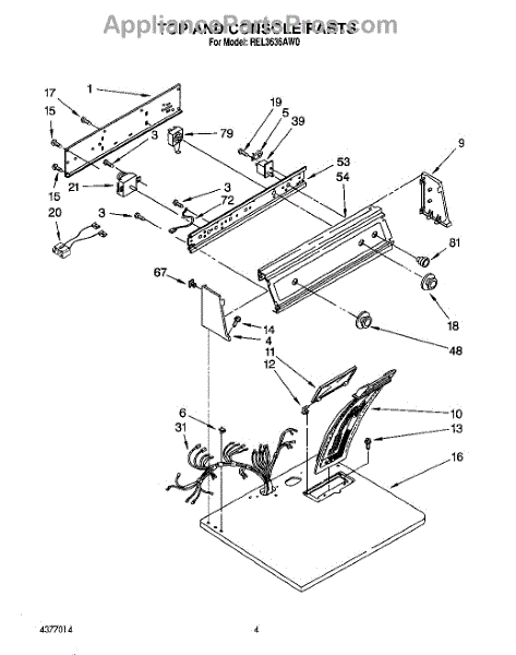 This console screw secures the control console to the appliance cabinet or top, keeping the panel tight and aligned. Replace a missing or damaged screw to stop panel wobble and rattling and maintain a snug, stable fit. What it does: