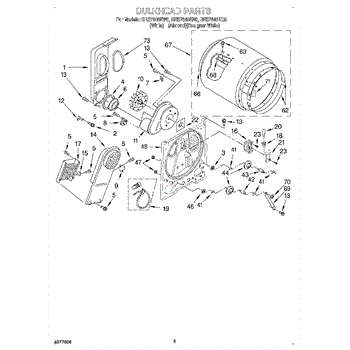 Over time, the drum baffle can become loose or damaged due to frequent use and contact with clothing or objects left in pockets. Physical wear or repeated impacts might cause it to crack, detach, or warp, reducing its ability to tumble clothes properly.