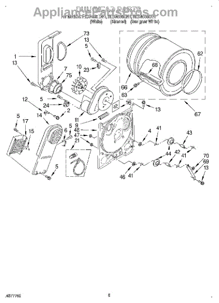 This is a drum assembly intended for use with dryers. This part can be found inside the dryer and is responsible for holding clothing while a cycle is running. It holds wet laundry while loading the appliance. Over time and with use, the drum assembly can start to wear out. This can cause the dryer to squeal, start and stop during a cycle, make buzzing noises, or seize up.If the drum assembly is damaged, it will need to be replaced. Make sure to have basic tools and a pair of work gloves ready. The dryer should be turned off and unplugged from the wall. Raise the top panel, remove the front panel, and then remove the drum. The drum support roller should be taken out and installed on the new drum. Reinstall with the new component and reassemble all parts before use.The drum assembly is made to be used with dryers and washer/dryer combos from Inglis, Estate, Admiral, Crosley, Roper, Magic Chef, Amana, KitchenAid, Maytag, Kenmore, and Whirlpool. It is a genuine OEM replacement part that is sourced directly from the manufacturer. The part is sold on an individual basis.