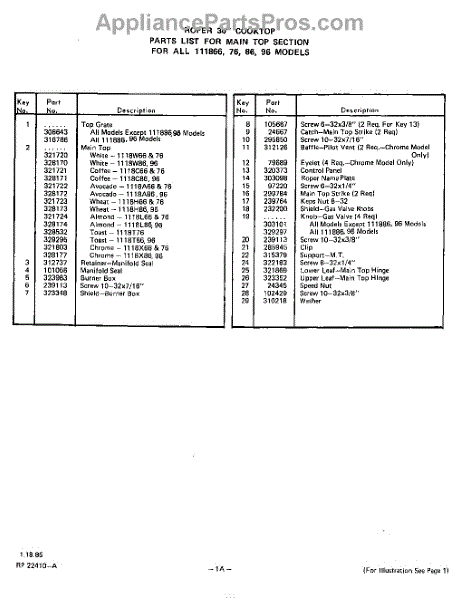 Parts for Whirlpool 1118W66: 03 - Section Parts
