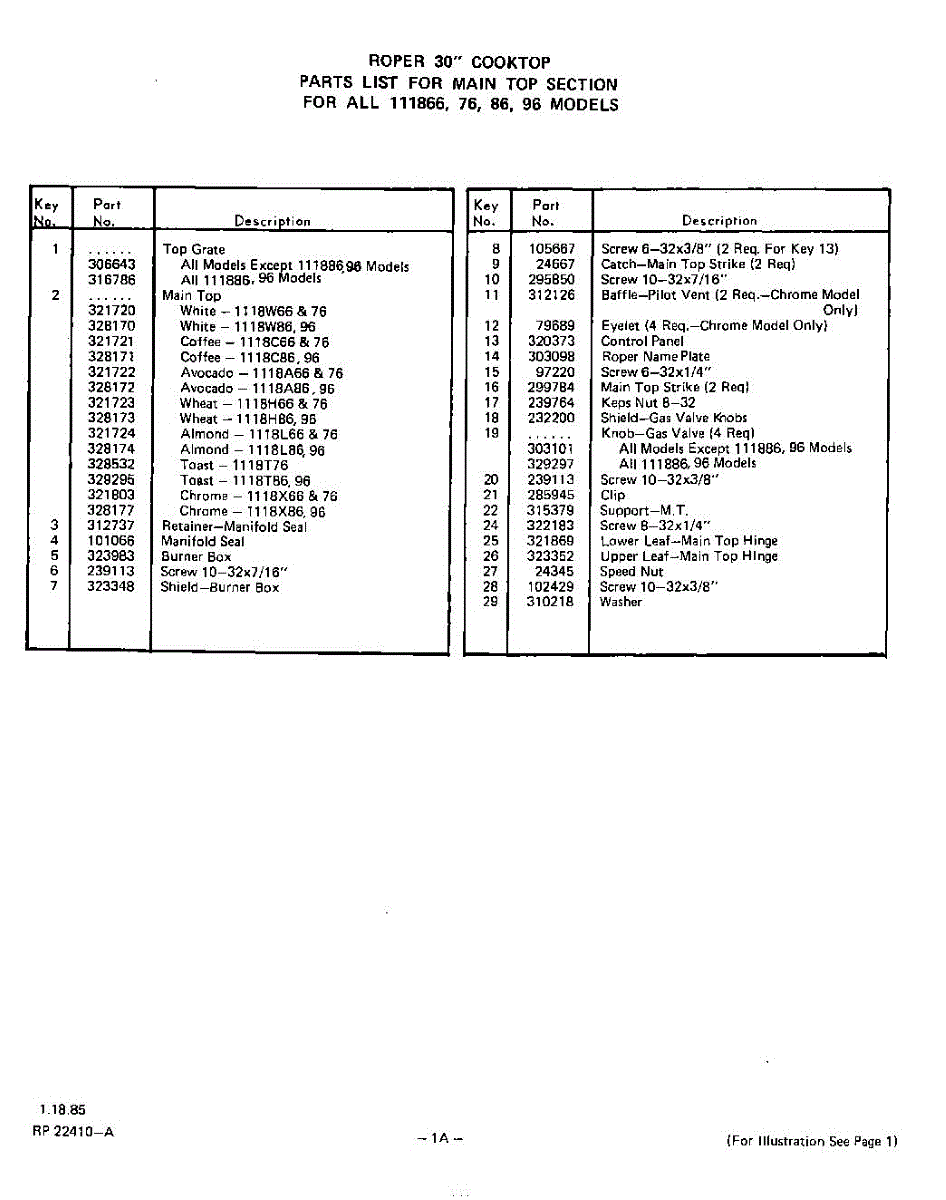 Parts for 1118W86