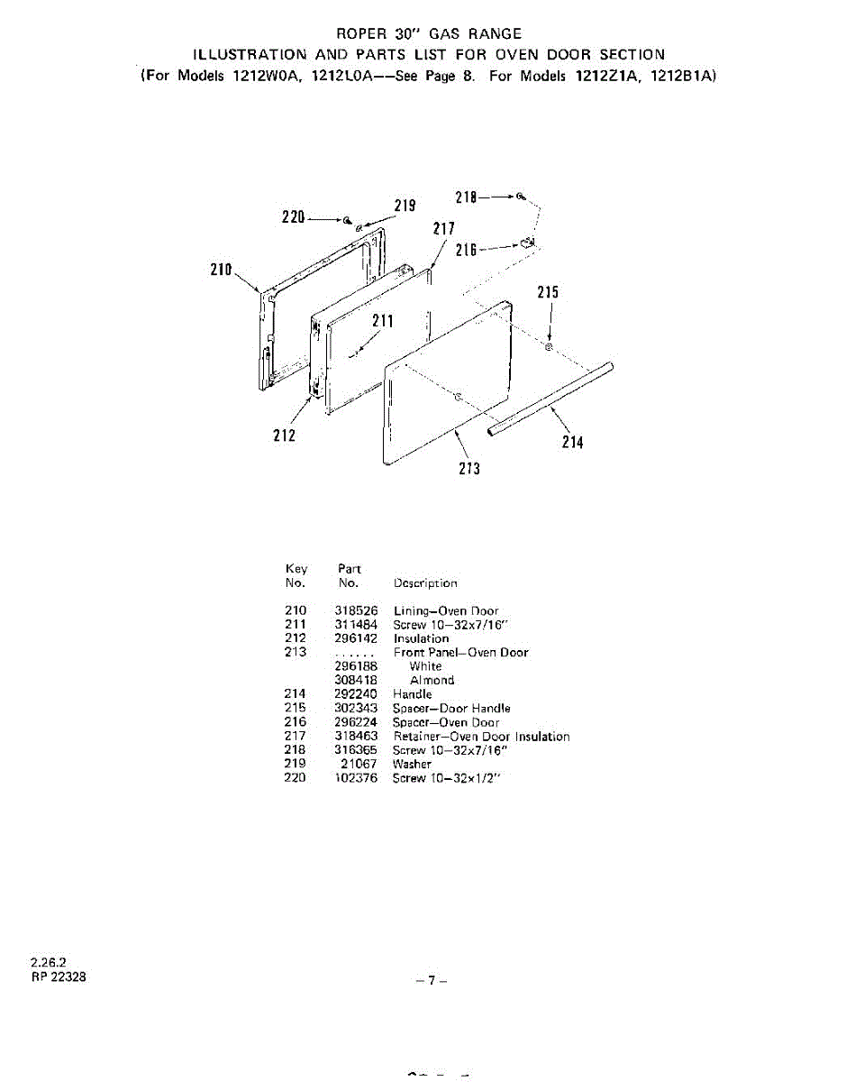 Parts for 1212W0A