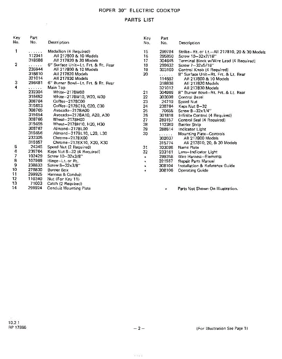 Parts for 2178W30
