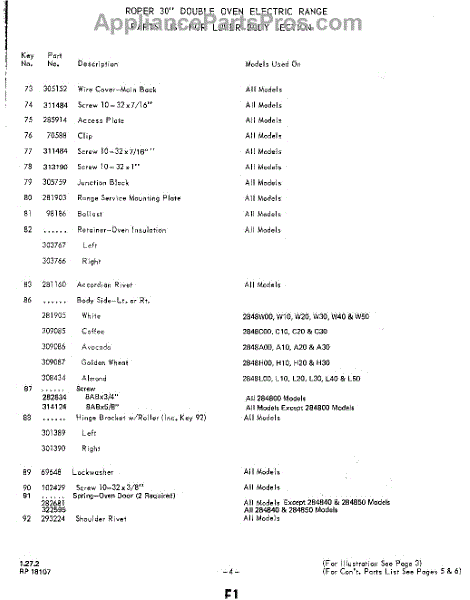 Whirlpool Range Parts