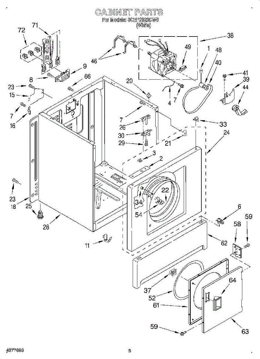 This split-phase motor assembly powers a dryer's drum and blower on qualifying 29" export 50Hz models, restoring rotation and airflow for normal drying performance. Designed as a direct-replacement motor assembly. What it does:
