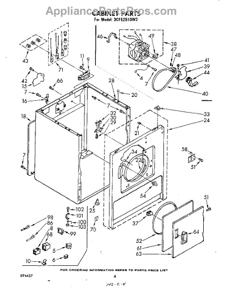 Fits all Whirlpool-made dryers (Whirlpool, Kenmore with prefix 110, Roper, KitchenAid, and Estate). Matching belt 341241 and rear support rollers 349241T. Whirlpool dryer repair manual 677818L.