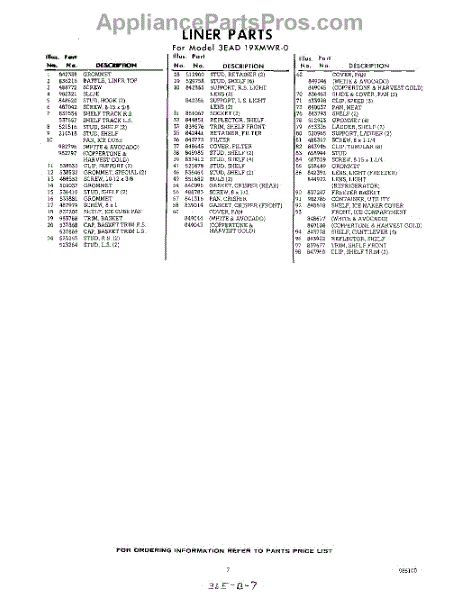 Parts for Whirlpool 3EAD19XMWR0: 07 - Section Parts