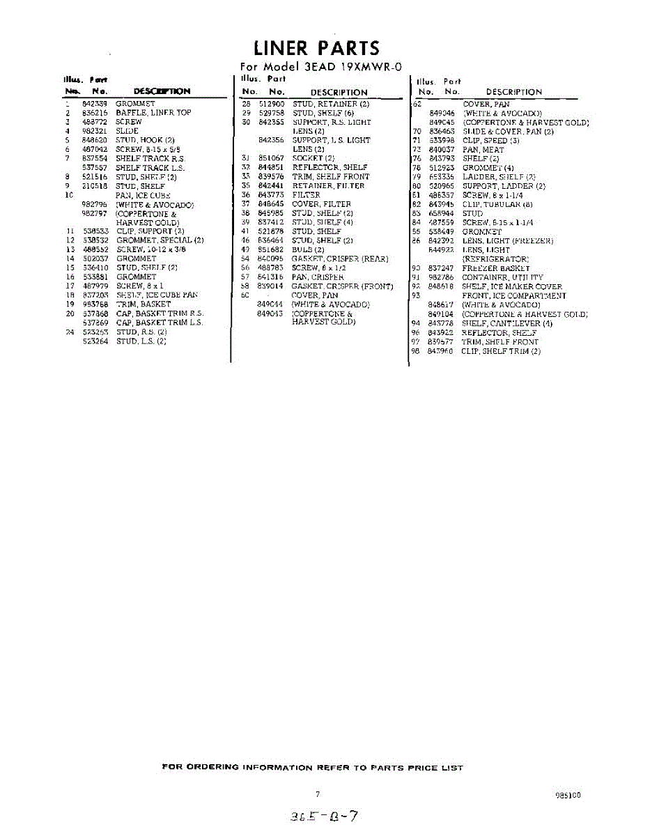 Parts for 3EAD19XMWR0