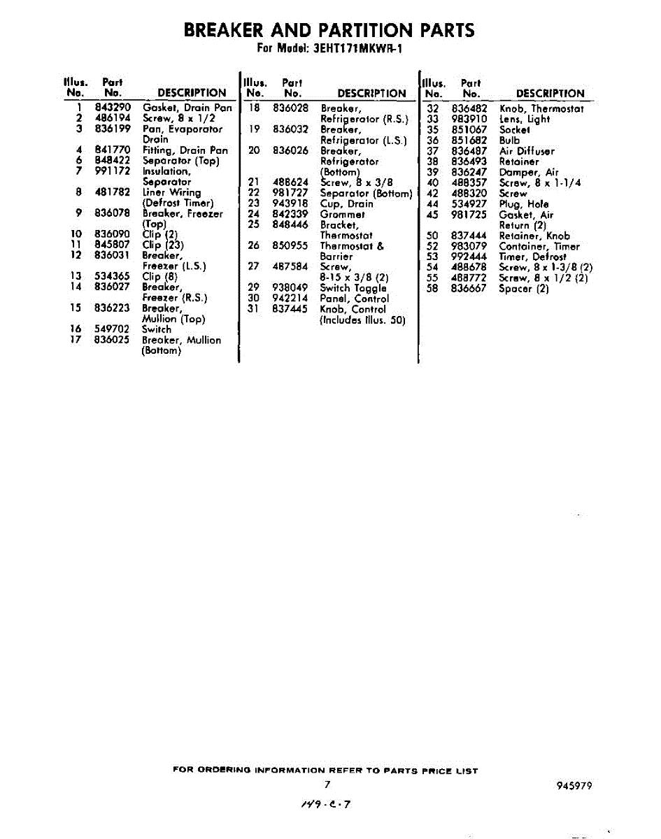 Parts for Whirlpool 3EHT171MKWR1: 07 - Section Parts
