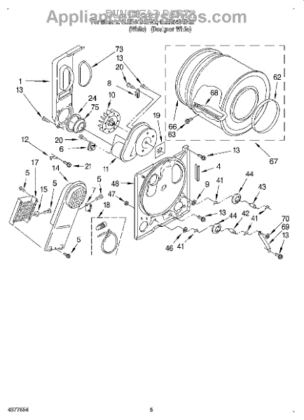 Complete drum assembly for dryers. Houses and rotates laundry during cycles. Replace if cracked, warped, damaged, or worn from extended use.