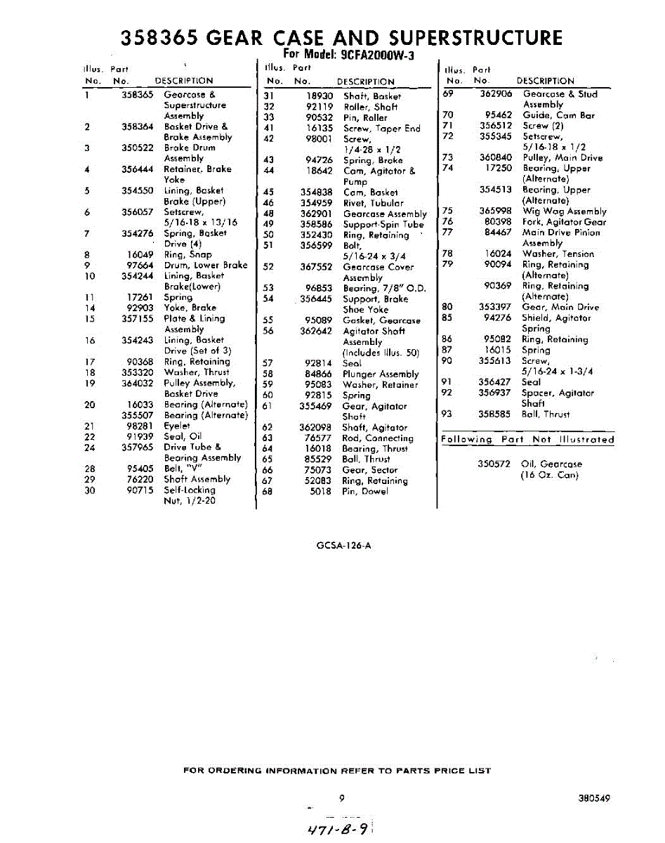 Parts for Whirlpool 9CFA2000W3: 09 - Section Parts