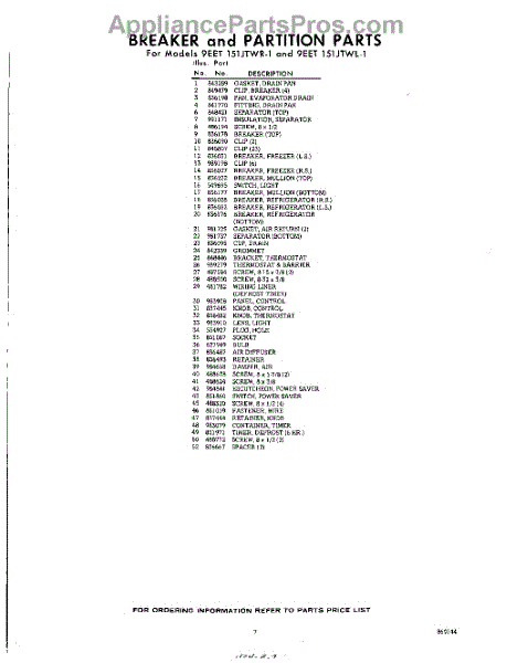 Parts for 9EET151JTWR1