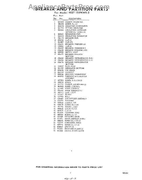 Parts for 9EET151PKWR0