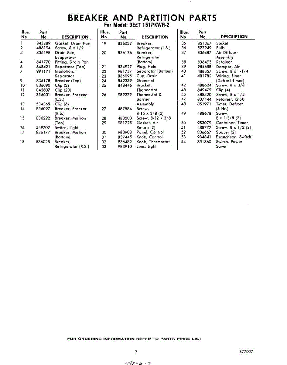 Parts for 9EET151PKWR2