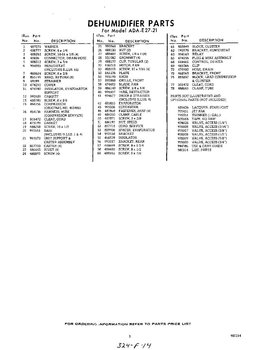 Whirlpool Dehumidifier Parts