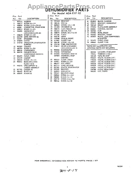 Parts for Whirlpool ADAE2722: 03 - Section Parts