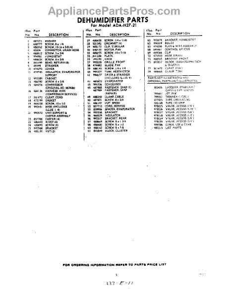 Parts for Whirlpool ADAH2721: 03 - Section Parts