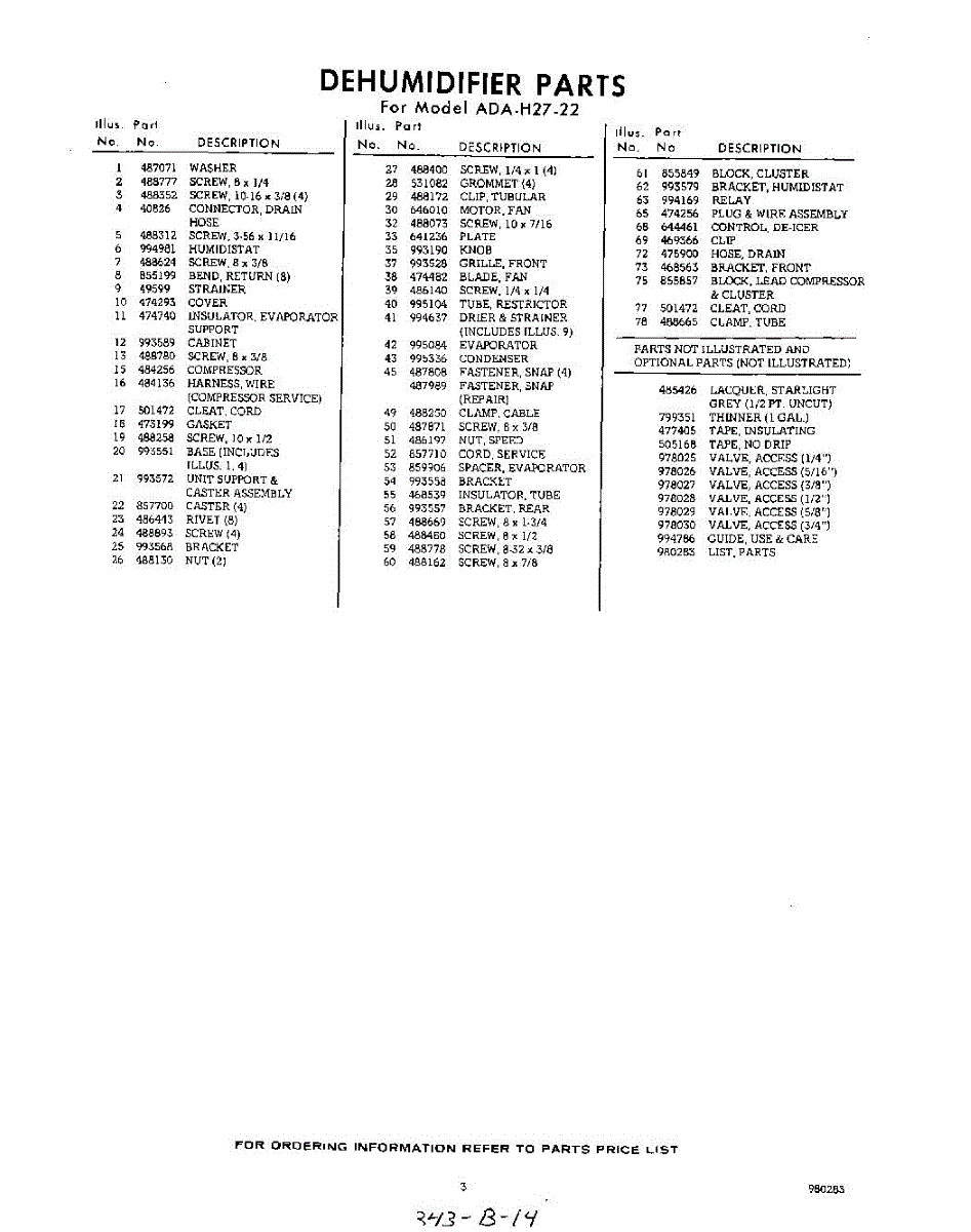Whirlpool Dehumidifier Parts