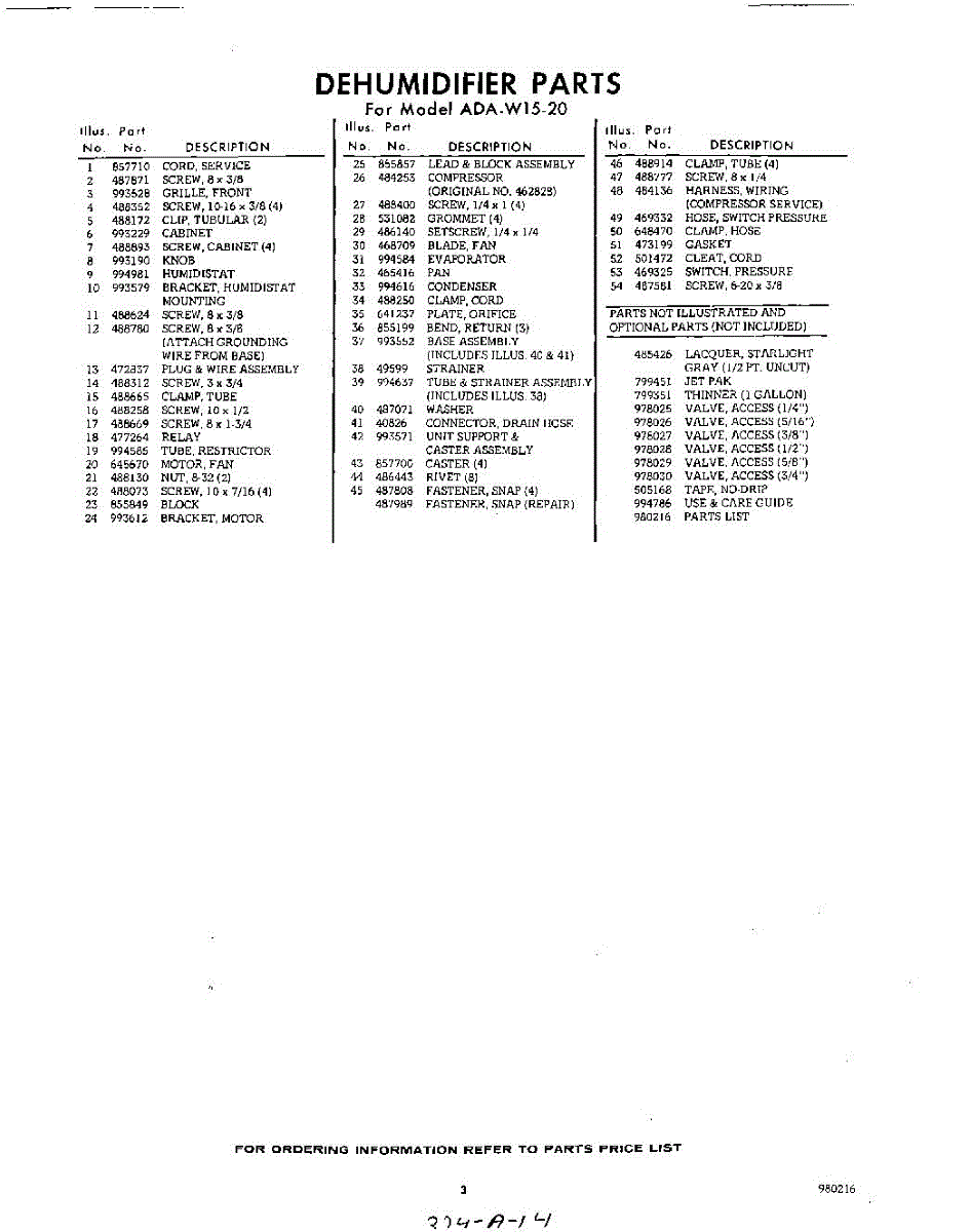 Parts for Whirlpool ADAW1520: 03 - Section Parts