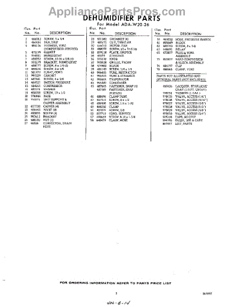 Whirlpool Dehumidifier Parts