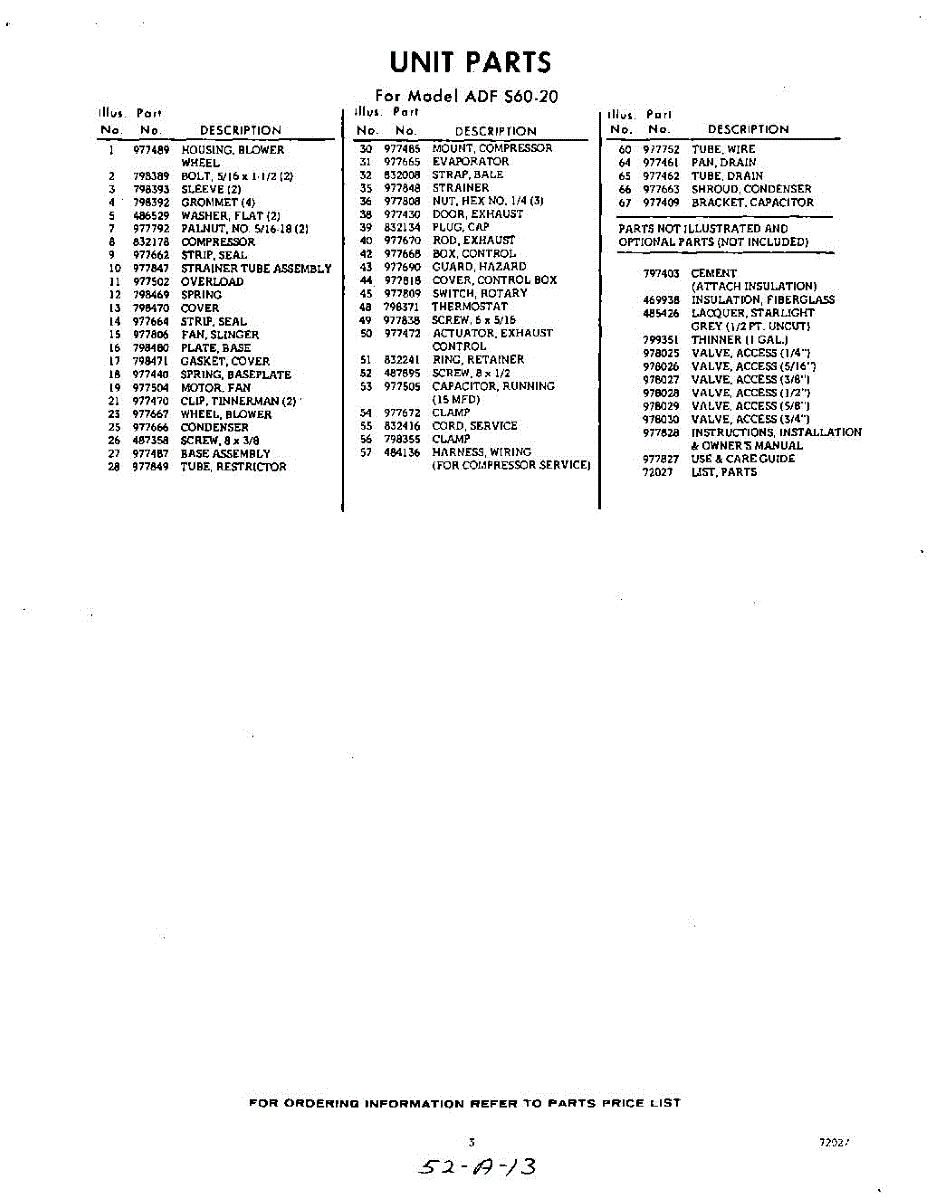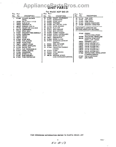 Parts for Whirlpool ADFS6020: 03 - Section Parts