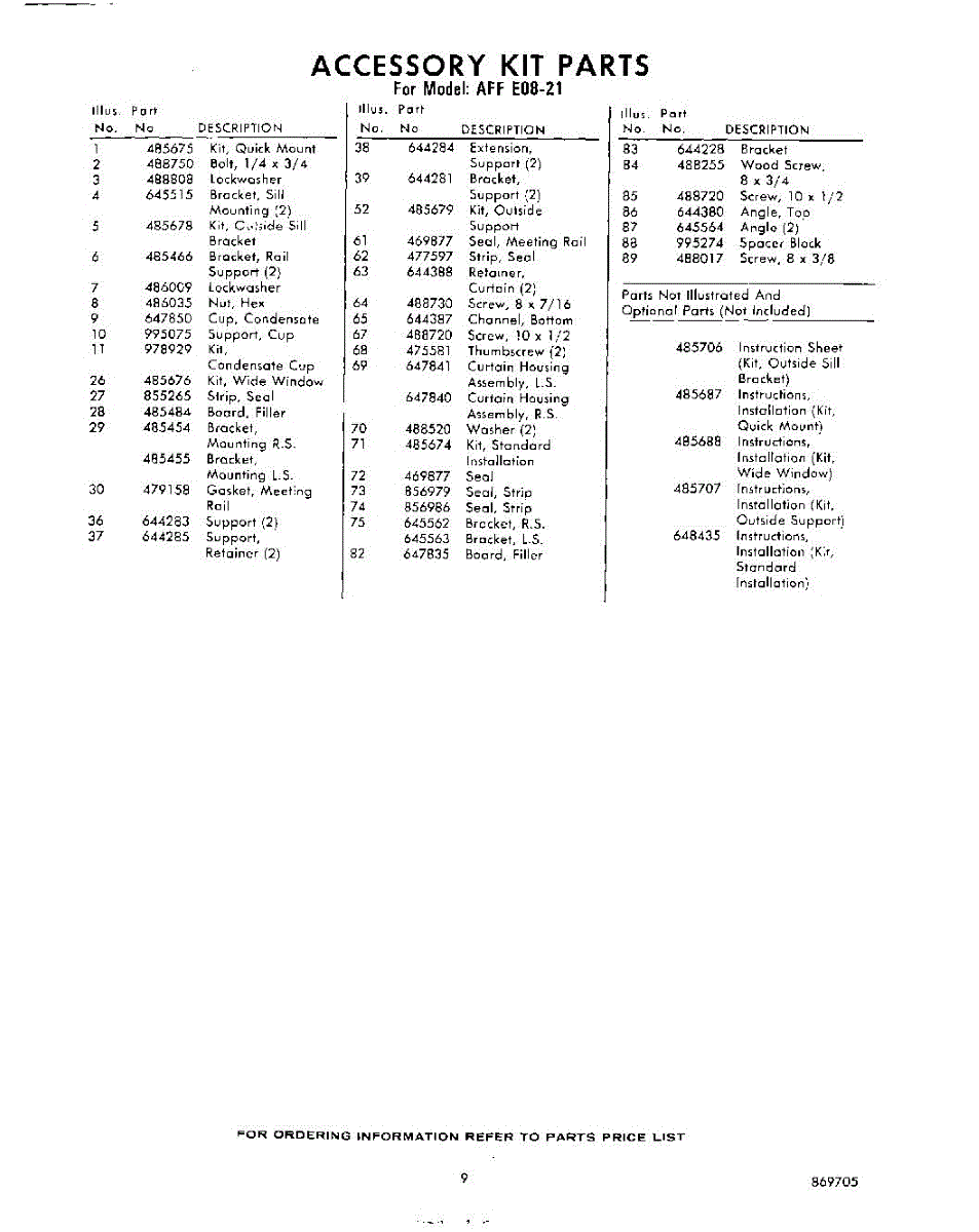 Parts for Whirlpool AFFE0821: 09 - Section Parts