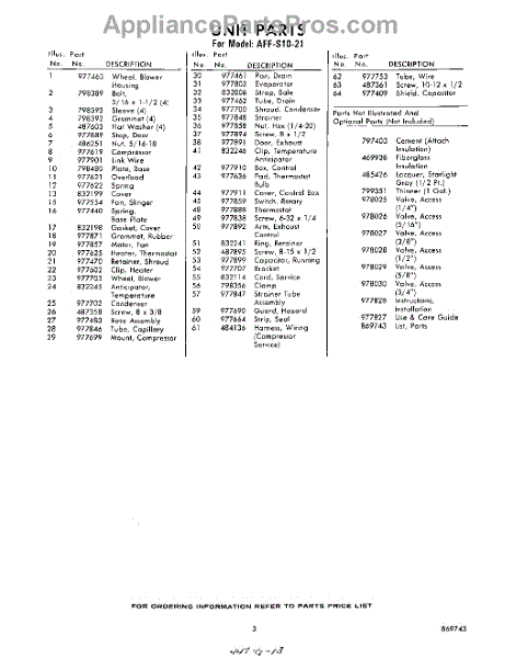 Parts for Whirlpool AFFS1021: 03 - Section Parts