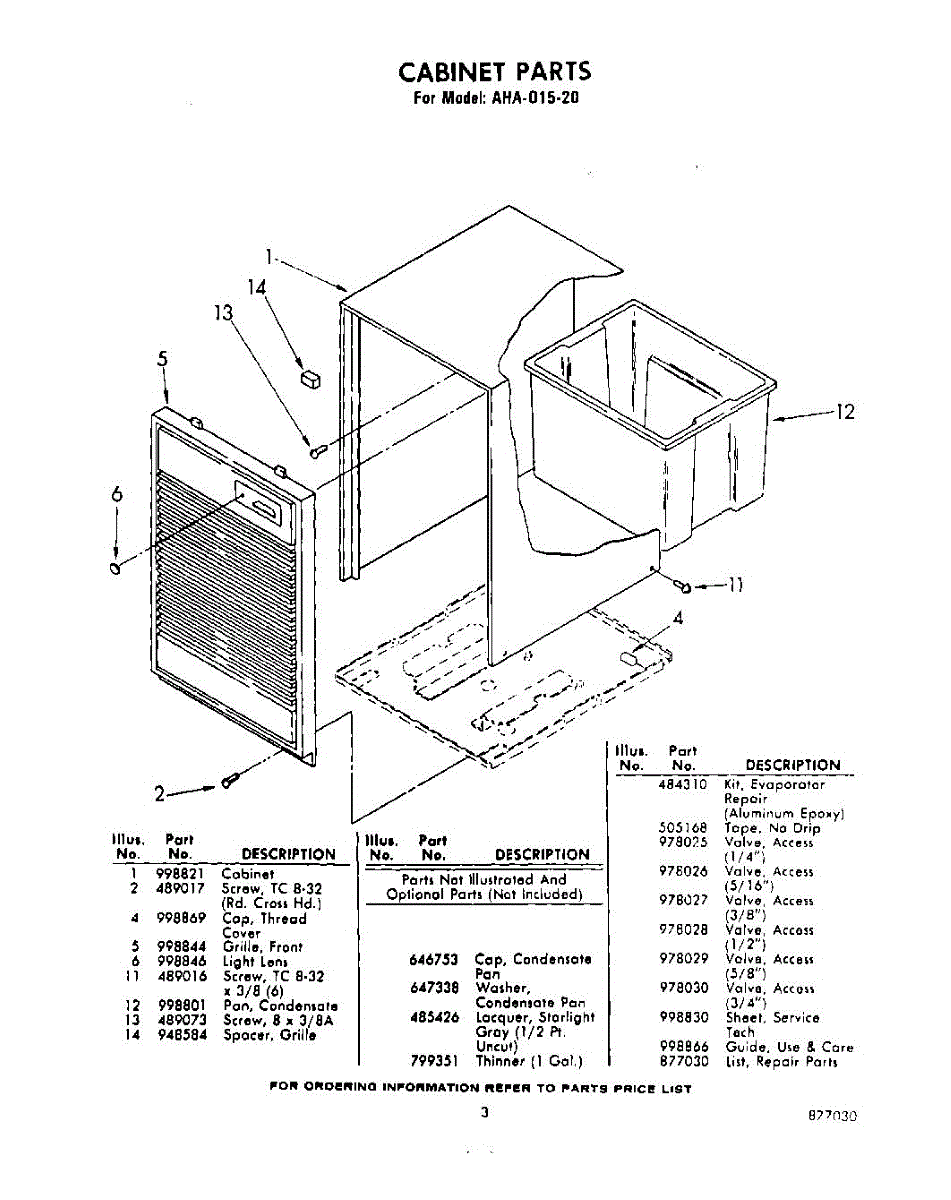 Parts for Whirlpool AHA01520: 03 - Section Parts