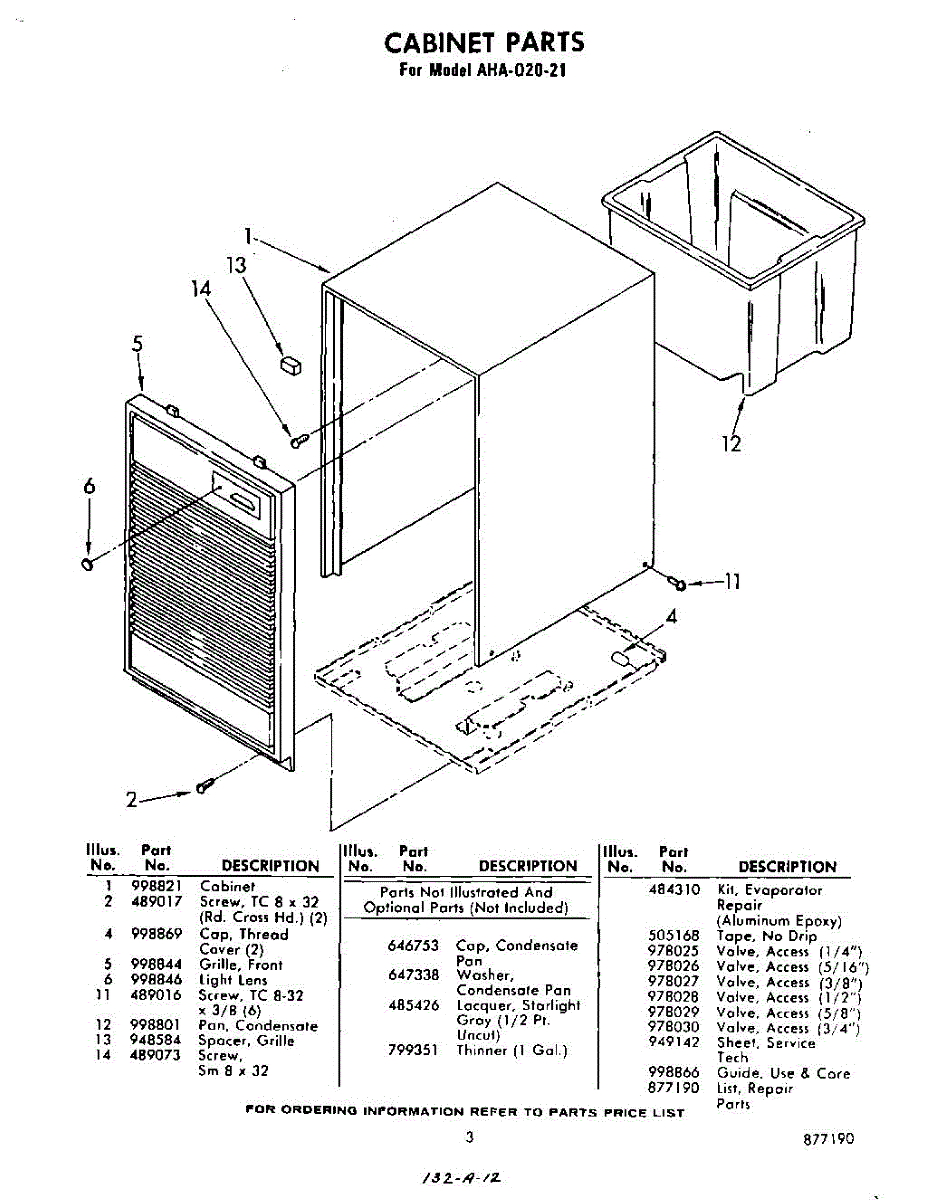 Parts for Whirlpool AHA02021: 03 - Section Parts