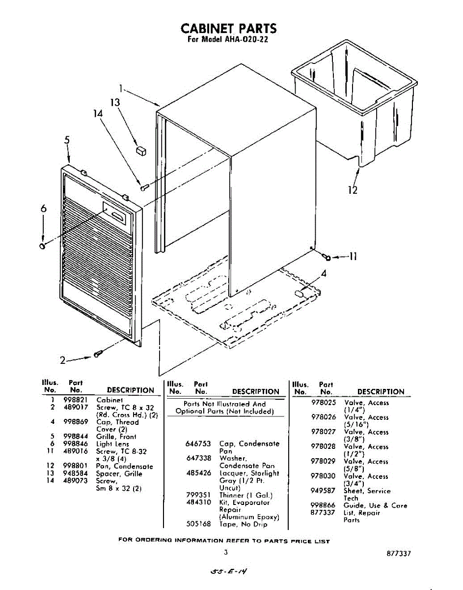 Parts for Whirlpool AHA02022: 03 - Section Parts