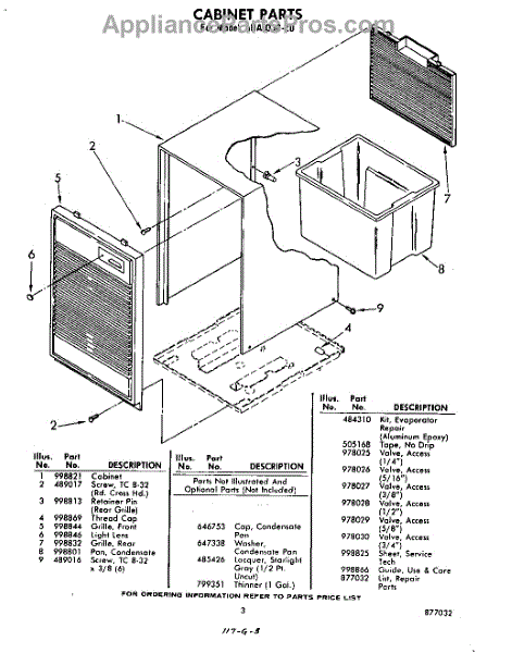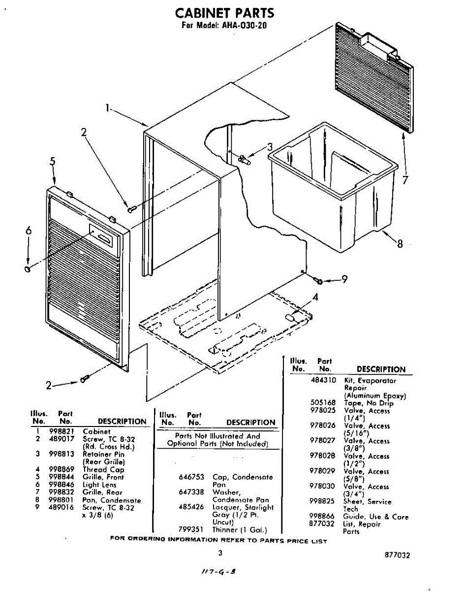 Parts for Whirlpool AHA03020: 03 - Section Parts