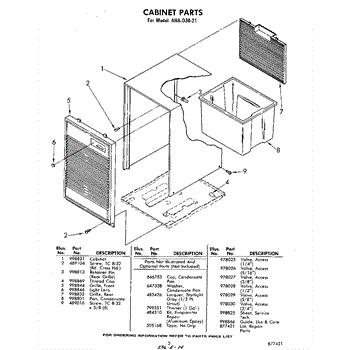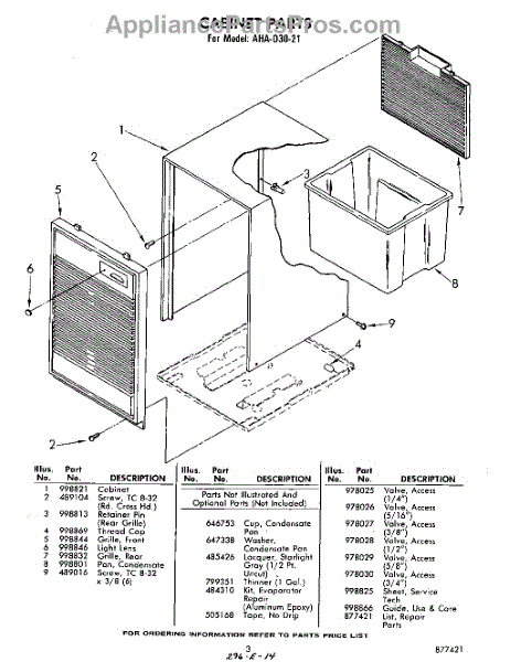 Parts for Whirlpool AHA03021: 03 - Section Parts