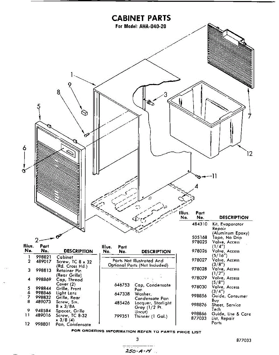 Parts for Whirlpool AHA04020: 03 - Section Parts