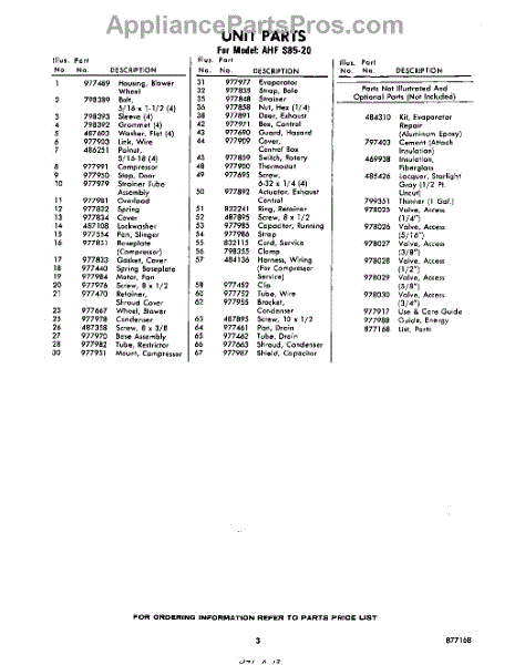 Parts for Whirlpool AHFS8520: 03 - Section Parts