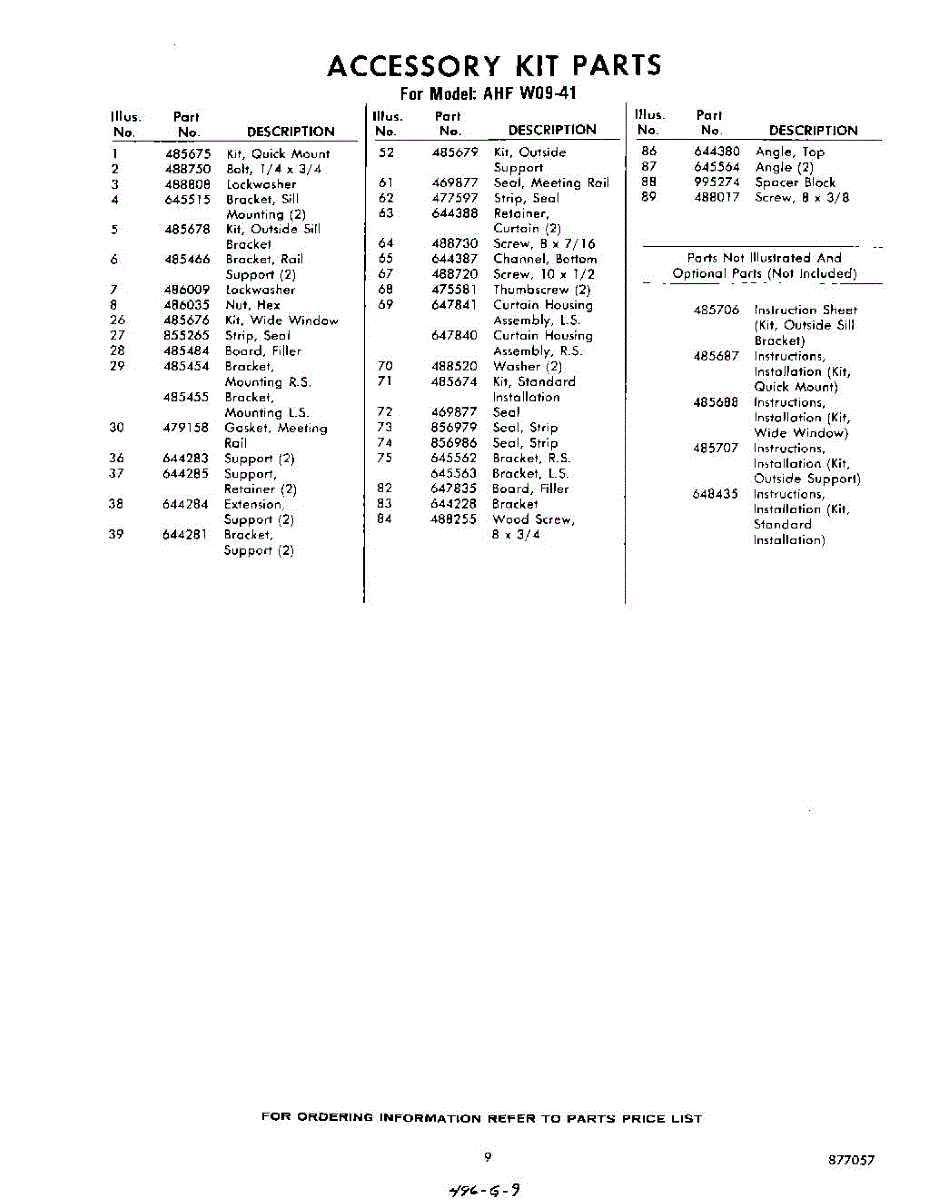 Parts for Whirlpool AHFW0941: 09 - Section Parts