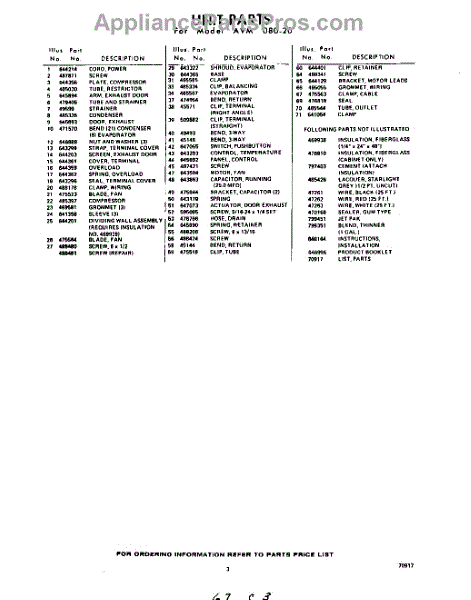Parts for Whirlpool AVM08020: 03 - Section Parts