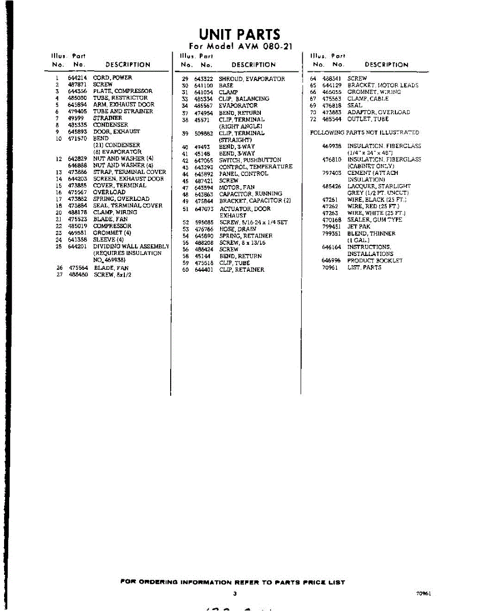 Parts for Whirlpool AVM08021: 03 - Section Parts